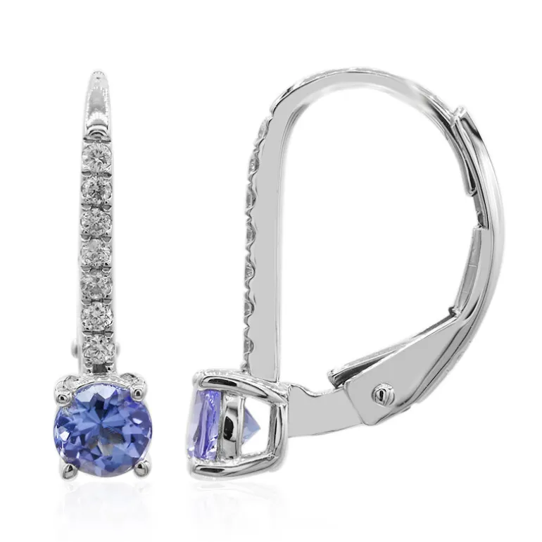 Diese schicken Ohrringe mit perfekt aufeinander abgestimmten AAA-Tansaniten im Rundschliff mit einem Gesamtgewicht von 0,539 Karat aus dem Herzen Tansanias entführen Sie in eine Welt der schlichten Eleganz. Ergänzt durch 14 funkelnde Diamanten im Reinheitsgrad SI2 setzen diese 0,104 Karat ein subtiles und doch eindrucksvolles Zeichen. Diese 17 mm großen Ohrringe aus edlem 14-karätigem Weißgold mit einem Gewicht von ca. 1,2 g sind ein Zeugnis für Handwerkskunst und Stil. Sie eignen sich sowohl für den lässigen Chic als auch für die anspruchsvolle Abendgarderobe und sind eine vielseitige Ergänzung für jede Schmucksammlung.