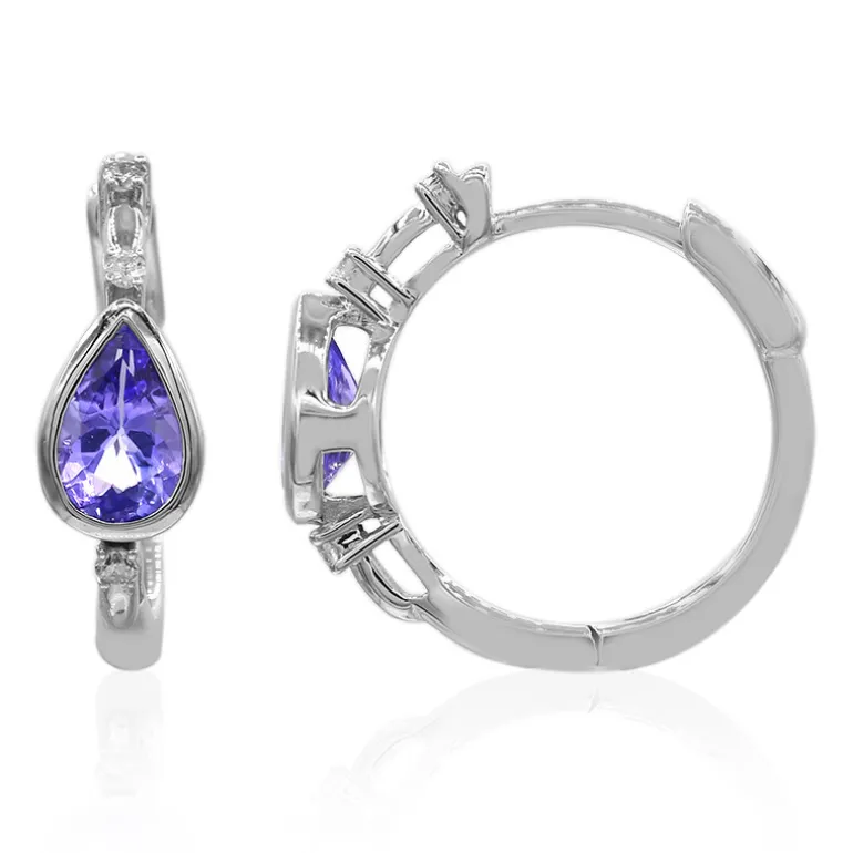 Lassen Sie sich von diesen raffinierten Ohrringen mit birnenförmigen AAA-Tansaniten von insgesamt 0,767 Karat in einer eleganten Fassung aus 10 Karat Weißgold verzaubern. Die tansanische Herkunft der Steine ist ein Beweis für ihre Qualität, während das zusätzliche Funkeln von sechs I1 (H) Diamanten einen luxuriösen Touch verleiht. Mit ihrem tropfenförmigen Design sind diese Ohrringe ein perfektes Accessoire für lässigen Schick und abendliche Eleganz. Ideal für jemanden, der einzigartigen Edelsteinschmuck mit einem Hauch von zeitlosem Charme zu schätzen weiß.