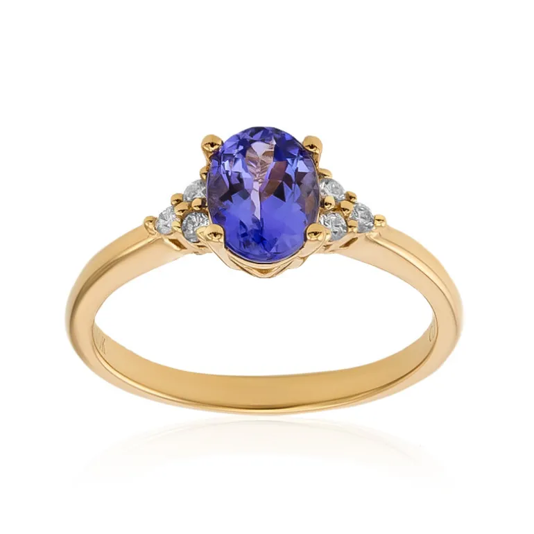 Dieser raffinierte Ring aus 10-karätigem Gelbgold mit einem atemberaubenden Tansanit von 1,03 Karat im Ovalschliff ist ein Schatz aus Tansania, der durch seinen leuchtend blauen Farbton besticht. Flankiert von sechs Diamanten mit einer Reinheit von I1 und einem Gesamtgewicht von 0,1 Karat sorgen die Edelsteine gemeinsam für ein umwerfendes Schauspiel an Brillanz. Mit einem Gesamtgewicht von 1,13 Karat präsentiert der Ring eine moderne und doch zeitlose Eleganz. Er ist ideal für Abendveranstaltungen und lässt sich hervorragend mit einem schicken Cocktailkleid oder einer formellen Robe kombinieren.