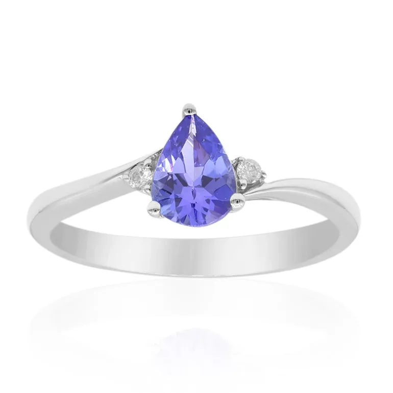 Schmücken Sie Ihre Hand mit den bezaubernden Farben eines tansanischen AAA-Tanzanits, der elegant in 10 Karat Weißgold gefasst ist. Dieser raffinierte Ring mit einem 0,648 Karat großen Edelstein im Teardrop-Schliff, der von zwei Diamanten im Brillantschliff akzentuiert wird, bietet ein zeitloses Design. Er ist ideal, um Ihrer Abendgarderobe einen Hauch von königlicher Raffinesse zu verleihen. Sein fesselnder blau-violetter Schimmer wird mit Sicherheit Bewunderung hervorrufen und zu einem geschätzten Stück in jeder Sammlung werden.