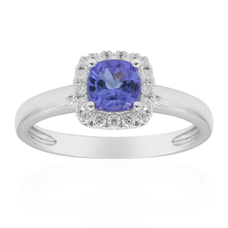 Entdecken Sie die Eleganz dieses exquisiten Rings mit einem AAA-Tansanit im Kissenschliff, fachmännisch gefasst in 416er Weißgold. Begleitet von 16 Diamanten im Rundschliff, funkelt das Design mit einem Gesamtkaratgewicht von 0,806 ct. Es eignet sich perfekt, um jedem Outfit einen Hauch von Raffinesse zu verleihen, sei es für eine formelle Veranstaltung oder einen schicken Abend im Freien. Ein zeitloses Stück, das jede Schmucksammlung wunderbar ergänzt.