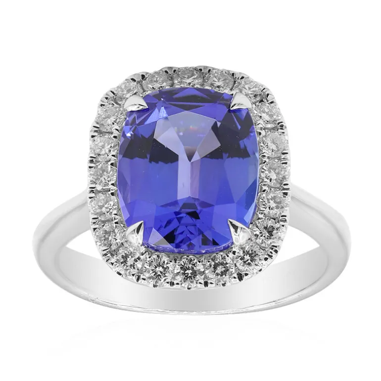 Dieser opulente Ring aus 18 Karat Weißgold wurde mit Leidenschaft gefertigt und präsentiert einen faszinierenden 4,21-karätigen AAA-Tansanit, der aus den reichen Ländern Tansanias stammt. Der antik geschliffene Edelstein ist von einem Heiligenschein aus 20 funkelnden Diamanten der Reinheit SI2 mit einem Gesamtgewicht von 0,516 Karat umgeben und sticht mit seinen Abmessungen von 11 x 9 mm aus der Masse hervor, indem er jedes Licht einfängt. Mit einem Gesamtkaratgewicht von ca. 4,726 ct ist dieser Ring ein Zeugnis für Eleganz und Luxus. Er eignet sich perfekt für große Anlässe oder für den Alltag und lässt sich nahtlos von Tag zu Abend tragen und verleiht jedem Outfit einen Hauch von Raffinesse.