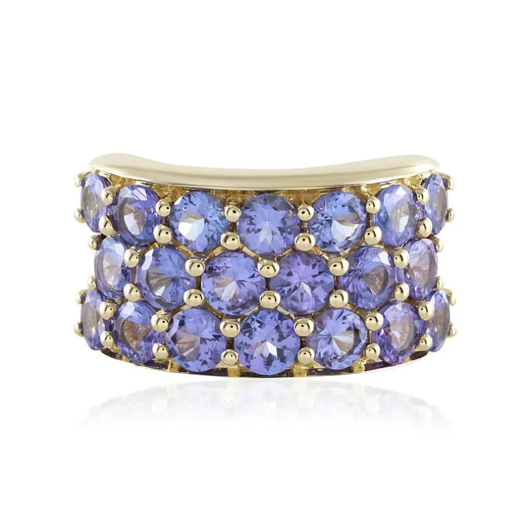 Dieser schillernde, mit Präzision gefertigte Ring präsentiert eine atemberaubende Reihe von AAA-Tansaniten mit insgesamt 5,4 Karat. Jeder einzelne Tansanit im Rundschliff stammt aus den reichen Ländern Tansanias und ist sorgfältig in ein Band aus glänzendem 9-karätigem Gold gefasst, das etwa 7,73 Gramm wiegt. Das Design des Rings mit den Maßen 23 x 22 mm besticht durch seine tiefblau-violetten Farbtöne, die den Finger elegant umspielen. Dieser Tansanit-Cluster-Ring ist die ideale Wahl für elegante Soirees oder für einen Hauch von Luxus im Alltag. Er ist ein zeitloses Stück für jede Kollektion.