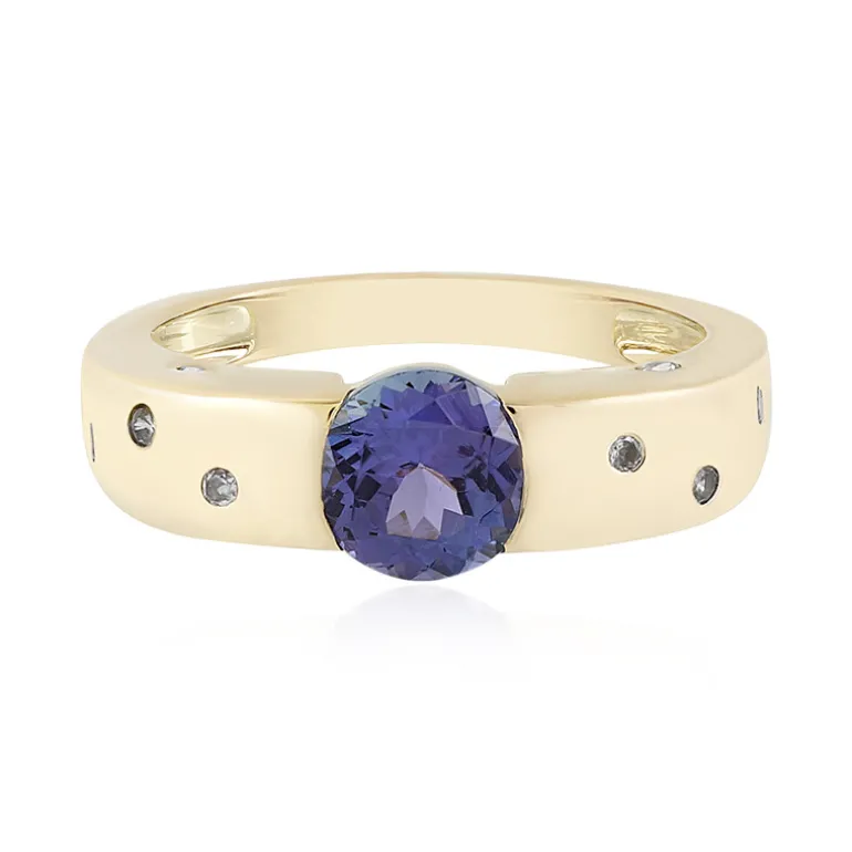 Entdecken Sie die Faszination dieses prächtigen AAA-Tansanit-Rings, der aus den lebendigen Landschaften Tansanias stammt. Mit einem 1,215 Karat großen Rundschliff in der Mitte, der in einem satten Violett schimmert, ist dieser Ring ein Zeugnis der Eleganz. Ergänzt durch zehn zierliche kambodschanische Zirkone von insgesamt 0,18 Karat, strahlt das Band aus 9 Karat Gold mit einem Gewicht von ca. 2,96 g einen zeitlosen Glanz aus. Dieser Ring ist die ideale Wahl für besondere Anlässe oder als luxuriöses Geschenk und verleiht jedem Ensemble einen Hauch von Raffinesse.