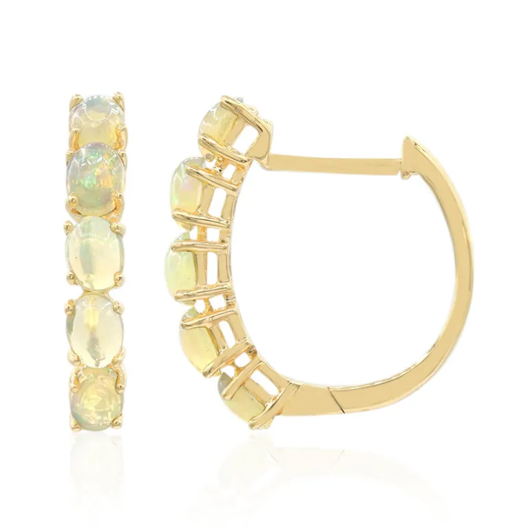 Erleben Sie das faszinierende Spiel der Farben mit diesen exquisiten AAA Welo Opal Ohrringen. Gefertigt aus elegantem 10-karätigem Gelbgold, mit 10 äthiopischen Opalen, reflektiert jeder ovale Cabochon eine fesselnde Palette von Farbtönen. Diese Ohrringe eignen sich sowohl für legere als auch für formelle Anlässe und verleihen jedem Outfit einen Hauch von Raffinesse, was sie zu einer vielseitigen Ergänzung Ihrer Schmucksammlung macht.