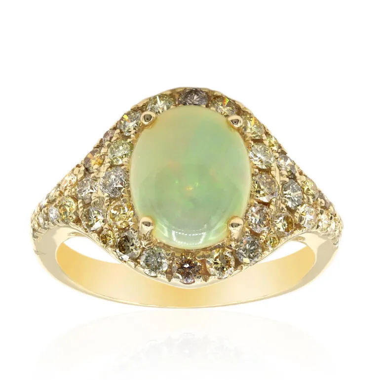 Schicker 1,52ct Äthiopischer Welo Opal 585 Gold Ring, Fancy Diamanten