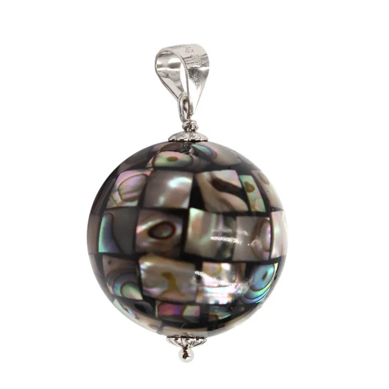 Chinesischer Abalone-Mosaik-Sterling-Anhänger, 0,85g