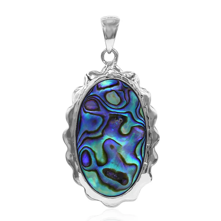 Chinesischer Abalone-Oval-Sterling-Anhänger, 29×17 mm