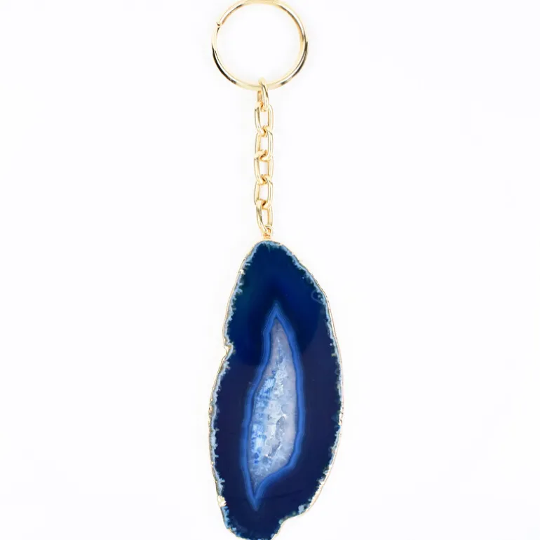 Brasilianischer Blauer Achat Goldplattierter Schlüsselanhänger, 95ct