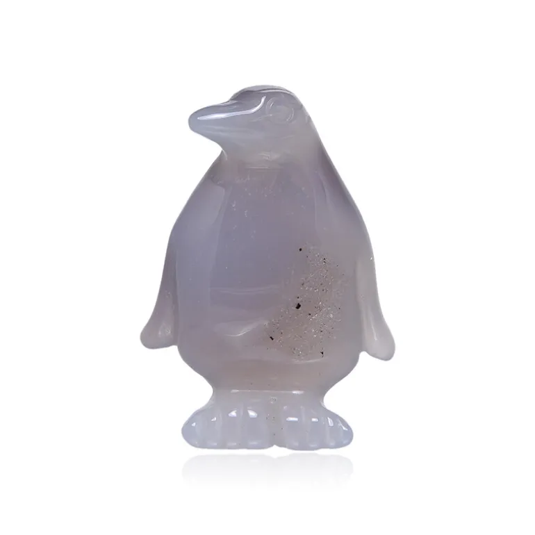 Lassen Sie sich von der verspielten Eleganz dieser skurrilen Pinguinfigur aus brasilianischem Achat verzaubern. Diese charmante Figur wurde sorgfältig aus einem einzigen Stück glänzenden grauen Achats aus Brasilien geschnitzt und verkörpert sowohl natürliche Schönheit als auch künstlerische Handwerkskunst. Mit einem beachtlichen Gewicht von 180 Karat und einer Größe von 45 x 30 mm ist sie eine hervorragende Ergänzung für jeden Sammler oder ein reizvolles Geschenk für Tierliebhaber. Die fantasievolle Form und die beruhigenden Farbtöne passen zu einer Vielzahl von Einrichtungsstilen und verleihen Ihrem Wohnraum einen Hauch von Wärme und Laune.