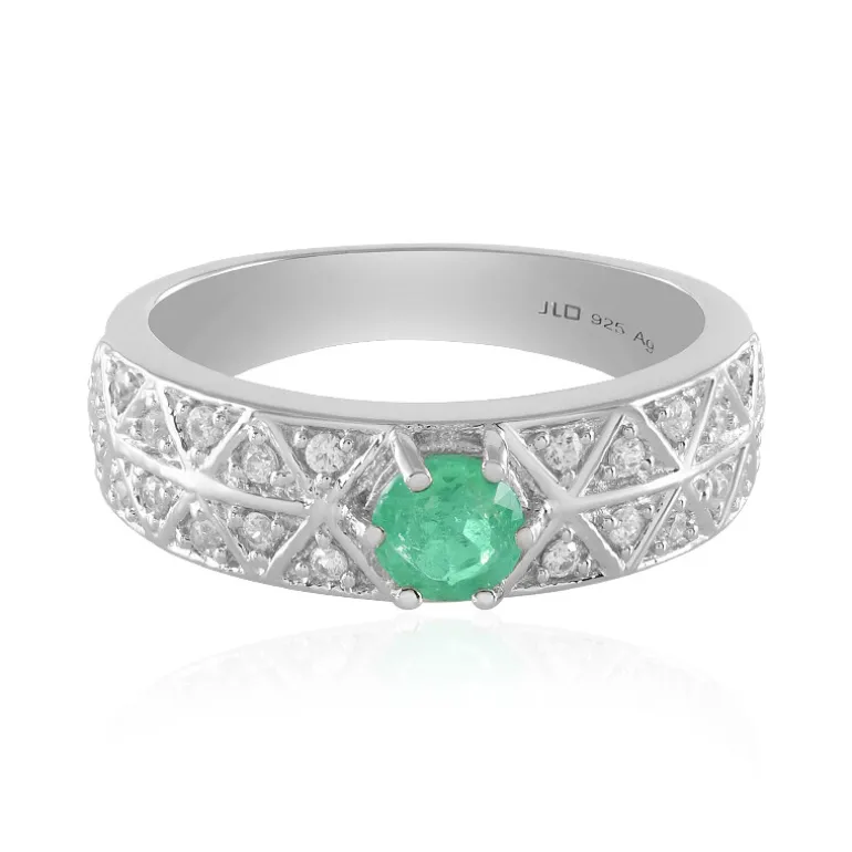 Entdecken Sie Eleganz mit diesem äthiopischen Smaragd-Silberring. Mit einem üppigen Smaragd im Rundschliff von 0,428 Karat, umgeben von funkelnden Zirkonen aus Kambodscha von insgesamt 0,357 Karat. Dieser 3,78 g schwere Ring ist aus 925er Sterlingsilber mit Platinbeschichtung gefertigt und ist ein echtes Schmuckstück. Perfekt für besondere Anlässe oder um Ihrer Alltagskleidung einen Hauch von Luxus zu verleihen.