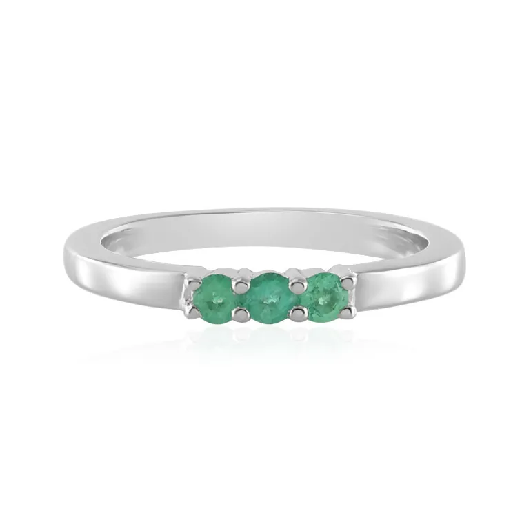 Schmücken Sie Ihre Hand mit der subtilen Raffinesse dieses äthiopischen Smaragd-Sterlingsilberrings. Mit drei natürlichen Smaragden im Rundschliff von insgesamt 0,223 Karat, die elegant in platiniertes 925er Sterlingsilber mit einem Gewicht von etwa 2,47 Gramm gefasst sind, verkörpert dieser Ring sowohl Luxus als auch Nachhaltigkeit. Das zeitlose Design und der grüne Schimmer des Rings sind ideal, um ihn tagsüber leger zu tragen oder ein Abendoutfit zu ergänzen. Er zeugt von einem raffinierten Geschmack und ist ein Muss für jeden, der die Schönheit von Edelsteinen zu schätzen weiß.