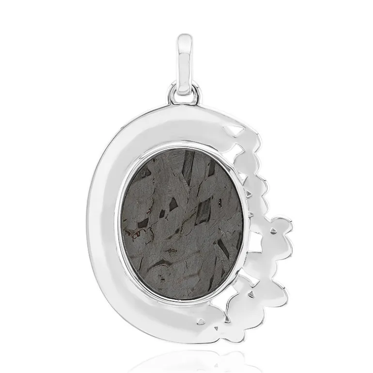 Entdecken Sie ein Stück kosmisches Wunder mit diesem Aletai Meteorit Sterlingsilber-Anhänger, der einen auffälligen Meteoriten aus China im Ovalschliff zeigt. Der 2,584-karätige Edelstein ist elegant in 925er Sterlingsilber gefasst und schafft eine einzigartige Mischung aus irdischem Handwerk und himmlischer Schönheit. Dieser Anhänger ist eine exquisite Wahl für alle, die das Außergewöhnliche zu schätzen wissen und eignet sich sowohl für legere als auch formelle Outfits.