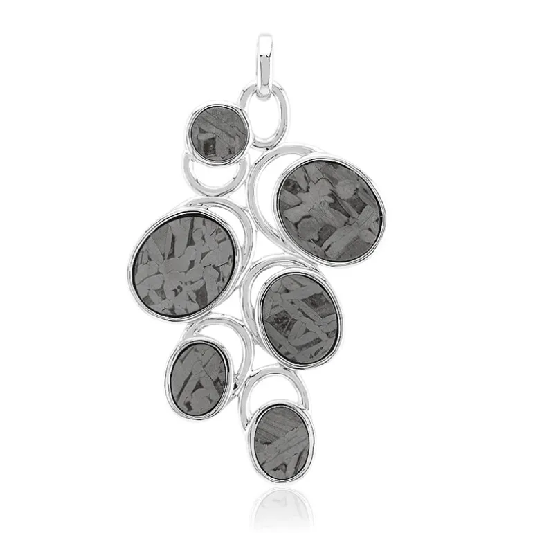 Entdecken Sie die Anziehungskraft des Kosmos mit diesem Aletai Meteorit Sterlingsilber-Anhänger. Die Meteoriten aus China mit einem Gesamtkaratgewicht von 6,622 sind fachmännisch in ovale und runde Formen geschliffen und strahlen einen modernen und himmlischen Charme aus. Mit seinem einzigartigen Design passt dieses Schmuckstück sowohl zu legeren als auch zu eleganten Outfits, perfekt für jede Gelegenheit, bei der Sie auffallen und ein Statement setzen möchten.