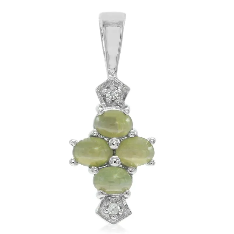 Entdecken Sie die Anziehungskraft dieses rätselhaften Anhängers, der die Magie des Katzenaugen-Alexandrits zur Schau stellt. Mit seinen 0,8 Karat ovalen Cabochon-Edelsteinen fängt dieses Stück aus Sterlingsilber das Licht ein und offenbart ein hypnotisierendes Farbenspiel. Winzige Zirkone aus Kambodscha sorgen für einen Hauch von Funkeln. Dieser Anhänger eignet sich perfekt, um sowohl legere als auch formelle Outfits mit einem Hauch von Raffinesse zu veredeln, und wird bei jeder Veranstaltung für Gesprächsstoff sorgen.
