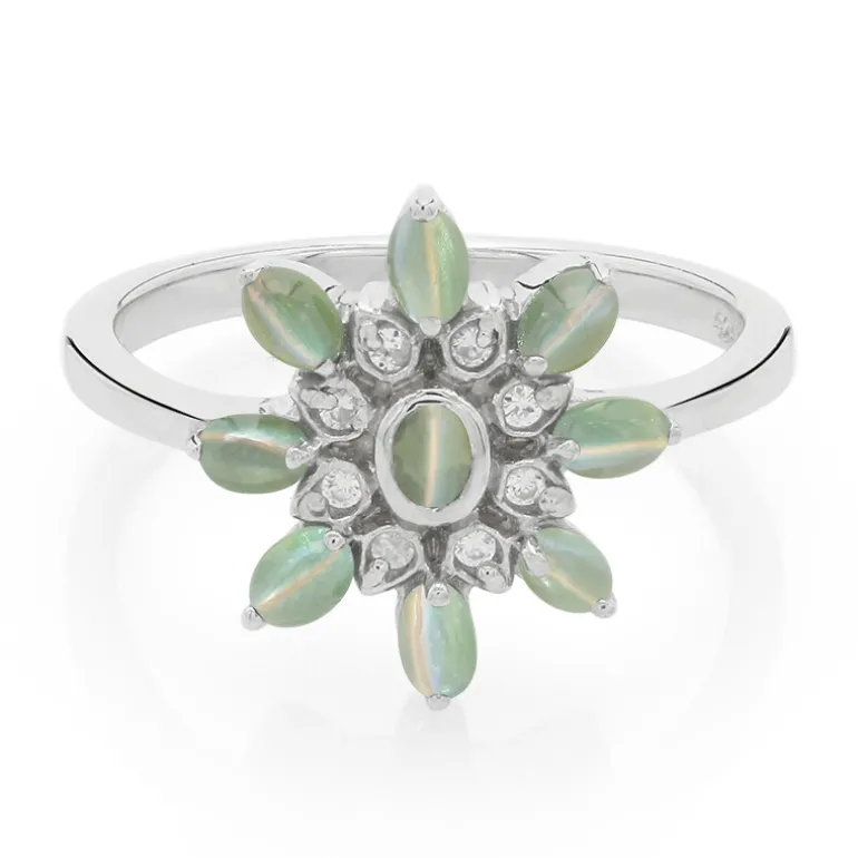 Entdecken Sie ein faszinierendes Kunstwerk mit diesem Ring aus Sterlingsilber, der ein bezauberndes Blumenarrangement aus ovalen Alexandriten im Cabochon-Schliff mit einem Gesamtgewicht von 0,8 Karat aus Indien zeigt, umgeben von funkelnden Zirkon-Akzenten aus Kambodscha. Jeder lebhafte Alexandrit ist sorgfältig gefasst, um sein einzigartiges Farbwechselphänomen zur Geltung zu bringen, akzentuiert von 0,078 Karat feinem Zirkon. Dieser Ring verleiht jeder Kleidung einen Hauch von Raffinesse und eignet sich sowohl für den Charme des Tages als auch für die Eleganz des Abends.