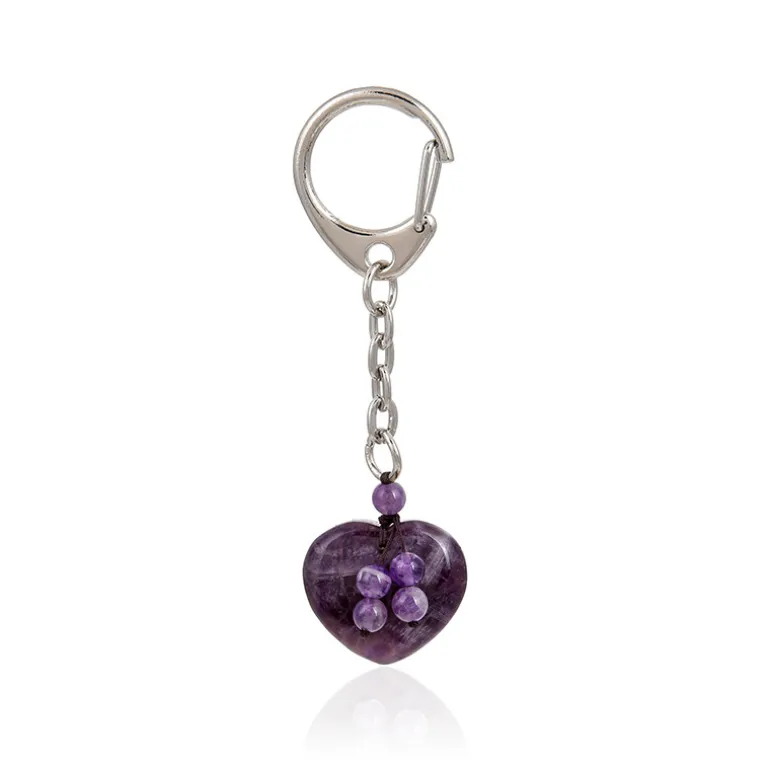 Brasilianischer Amethyst Herz Schlüsselanhänger, Edelstahl, 62,7ct