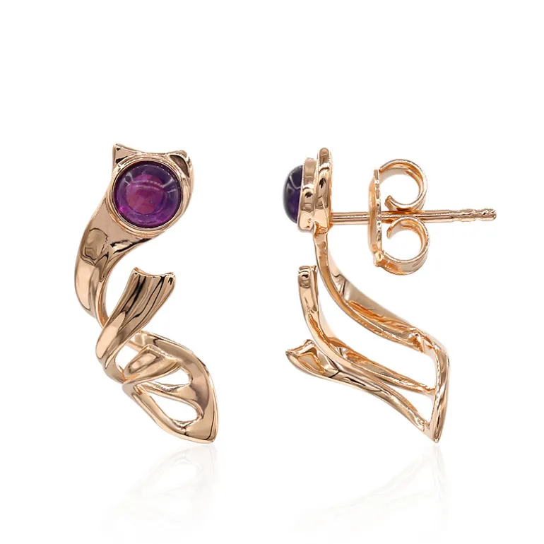 Entdecken Sie den Reiz dieser bezaubernden Ohrringe mit einem runden brasilianischen Amethyst-Cabochon, der in 925er Sterlingsilber mit einer eleganten Roségoldplattierung gefasst ist. Mit einem Gewicht von ca. 2,55 Gramm und einem Gesamtkaratgewicht von 0,62 ct strahlen diese Ohrringe Raffinesse aus. Ihr einzigartiges Design macht sie zu einem idealen Accessoire sowohl für legere als auch für formelle Kleidung, perfekt, um jedem Outfit einen Hauch von Farbe und Eleganz zu verleihen.