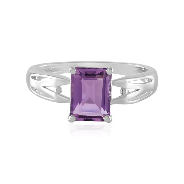 Dieser raffinierte Ring zeigt einen faszinierenden brasilianischen Amethysten von 1,3 Karat, der elegant in einer Fassung aus 925er Sterlingsilber präsentiert wird. Mit seinem Oktagon-Schliff spielen die Facetten des Edelsteins mit dem Licht und erzeugen ein bezauberndes Funkeln, das alle Blicke auf sich zieht. Das schlichte und moderne Banddesign unterstreicht die Kühnheit des lilafarbenen Mittelstücks und sorgt für Tragekomfort. Dieser Ring ist perfekt, um jedem Outfit einen Hauch von Charme zu verleihen, und eignet sich sowohl für legere Looks als auch für besondere Anlässe.