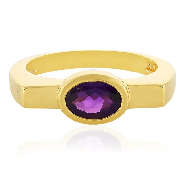 Entdecken Sie die schlichte Eleganz dieses minimalistischen Rings mit brasilianischem Amethyst. Er ist aus hochwertigem 925er Sterlingsilber gefertigt und mit einer glänzenden Goldplattierung überzogen. Er wiegt ca. 3,27 g. Der zentrale Edelstein ist ein Amethyst im Ovalschliff, der für seine tiefvioletten Farbtöne bekannt ist, mit einem Gesamtgewicht von 1,08 Karat. Mit einer Größe von 23×21 mm strahlt dieser Ring aus der MONOSONO COLLECTION Raffinesse aus. Er lässt sich mühelos mit einem Business-Outfit kombinieren oder verleiht einer Abendgarderobe eine raffinierte Note. Ein Muss für alle Schmuckliebhaber, die zeitloses Design und einen Hauch von Farbe schätzen.