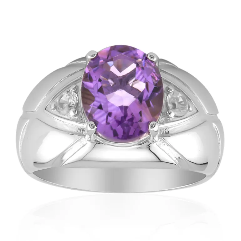 Entdecken Sie den Charme dieses prächtigen Rings mit einem brasilianischen Amethysten von 2,256 Karat im klassischen Ovalschliff, der von schimmerndem 925er Sterling Silber umschlossen wird. Die lavendelfarbenen Töne des Amethysten werden durch zwei funkelnde Zirkone aus Tansania ergänzt, die ihm einen Hauch von Brillanz verleihen. Mit einem Gesamtgewicht von 2,418 ct ist dieser Ring eine Hommage an die Eleganz. Das massive Silberband mit einem Gewicht von ca. 5,07 g garantiert Langlebigkeit und Komfort. Dieser Ring eignet sich sowohl für den Alltag als auch für besondere Anlässe. Er wird mit Sicherheit Komplimente ernten und eine wertvolle Ergänzung für jede Schmucksammlung sein.
