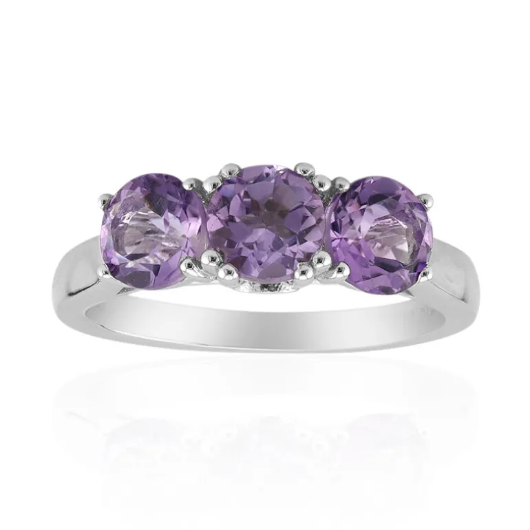 Entdecken Sie die Faszination des brasilianischen Amethysts mit diesem exquisiten Ring aus 925er Sterlingsilber. Mit drei Amethysten im Rundschliff von insgesamt 1,658 Karat, ergänzt durch tansanische Zirkon-Akzente, glänzt dieser Ring mit einem Gesamtkaratgewicht von 1,671 ct. Der 26×20 mm große Ring wiegt etwa 2,7 Gramm und bietet einen bequemen und eleganten Sitz. Dieser Ring eignet sich sowohl für legere als auch für formelle Anlässe. Er passt sowohl zu Tages- als auch zu Abendgarderobe und verleiht jedem Outfit einen Hauch von raffiniertem Lila.