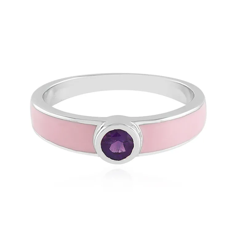 Dieser schicke Ring aus Sterlingsilber mit einem fesselnden brasilianischen Amethysten im Rundschliff von 0,27 Karat strahlt zeitlose Eleganz aus. Perfekt ausbalanciert, umschließt das glänzende 925er Silber den tiefvioletten Edelstein und verleiht jedem Look einen Hauch von Raffinesse. Umgeben von einem schlanken Band, das mit einem zarten Rosaton akzentuiert ist, setzt dieser Ring einen frischen Farbakzent, der sich sowohl für zwanglose Brunches als auch für bezaubernde Abendveranstaltungen eignet. Ein subtiles und doch atemberaubendes Stück, das zu einem beliebten Bestandteil Ihrer Schmucksammlung werden wird.