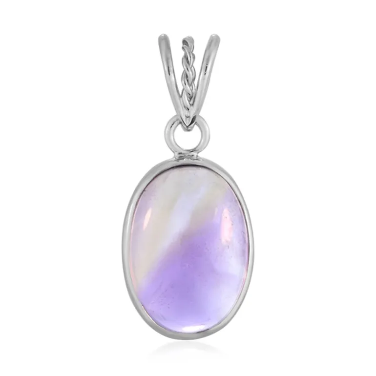 Dieser verführerische Anhänger präsentiert einen fesselnden 10,5-karätigen Ametrin aus den üppigen Regionen von Bolivien. Der ovale Cabochon-Schliff des Edelsteins vergrößert seinen bezaubernden Farbverlauf aus violetten und goldenen Tönen und erzeugt einen faszinierenden Effekt. Der liebevoll in platiniertes 925er Sterlingsilber gefasste Rahmen unterstreicht die natürliche Schönheit des Ametrin. Dieser Anhänger ist ein ideales Accessoire, um einer klassischen weißen Bluse einen Farbakzent zu verleihen oder ein Abendkleid aufzuwerten. Er ist vielseitig genug, um sowohl im Alltag als auch bei besonderen Anlässen getragen zu werden. Seine einzigartige Farbkombination passt zu einer Vielzahl von Garderoben und macht ihn zu einem echten Hingucker in jeder Schmucksammlung.