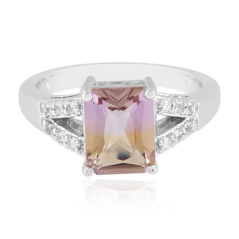 Bolivianischer Ametrin & Zirkon Platinplattierter Silberring