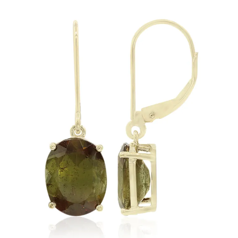 Entdecken Sie die fesselnde Anziehungskraft unserer brasilianischen Andalusit-Tropfenohrringe, bei denen die erdigen Töne der oval geschliffenen Edelsteine von 4,131 Karat nahtlos mit der Wärme des 9-karätigen Gelbgolds verschmelzen. Diese eleganten Ohrringe mit einem Gesamtgewicht von ca. 1,1 Gramm Gold haben eine Länge von 27 mm und sind mit sicheren Hebelverschlüssen ausgestattet, die für Komfort und Sicherheit sorgen. Diese Ohrringe eignen sich perfekt, um jedem Outfit einen Hauch von Raffinesse zu verleihen. Sie werden bei Ihrer nächsten formellen Veranstaltung sicher für Gesprächsstoff sorgen oder eine raffinierte Ergänzung zu Ihrer Geschäftskleidung sein.