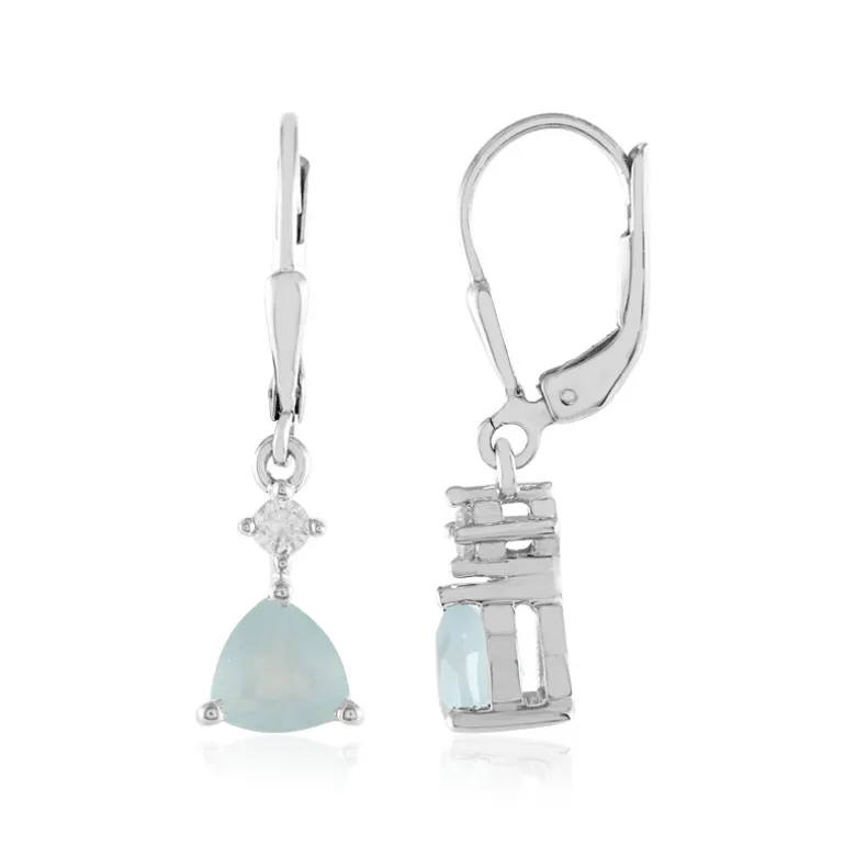 Entdecken Sie die Eleganz dieser Aqua-Chalcedony-Ohrringe aus plattiertem 925er Sterlingsilber. Der indische Aqua-Chalcedon im Trillium-Schliff wird durch brillante Zirkone aus Kambodscha ergänzt. Perfekt, um Ihrer Abendgarderobe einen Hauch von Raffinesse zu verleihen, oder als schickes Accessoire für lässige Anlässe. Diese Ohrringe glänzen in einem sanften Farbton, der sie zu einer vielseitigen und stilvollen Ergänzung jeder Schmucksammlung macht.