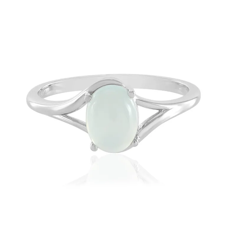 Entdecken Sie die ruhige Eleganz dieses Rings aus indischem Aqua-Chalcedon, der durch die beruhigenden Farbtöne eines ovalen Cabochons von 1,89 Karat hervorgehoben wird. In 925er Sterlingsilber gefasst und mit einem Platin-Finish für zusätzliche Haltbarkeit und Glanz versehen, präsentiert das schlichte und doch fesselnde Design einen 9×7 mm großen Chalcedon in einem modernen Stil. Perfekt, um Ihrer Alltagskleidung einen Hauch von Eleganz zu verleihen oder Ihre Abendgarderobe aufzuwerten.