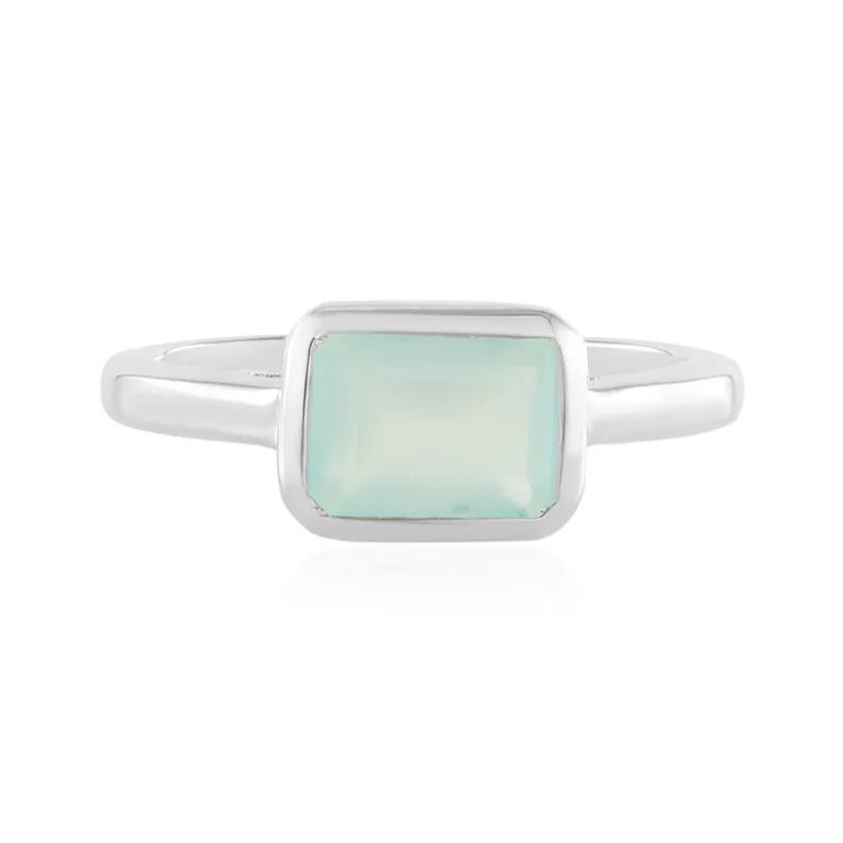 Entdecken Sie die ruhige Schönheit dieses Rings aus Aqua-Chalcedon aus Indien, eingefasst in glänzendes platiniertes 925er Sterling Silber. Der achteckige, stufenförmig geschliffene Edelstein mit den Maßen 8 x 6 mm und einem Gewicht von 1,221 ct verleiht ihm einen eleganten Touch. Dieses Schmuckstück eignet sich sowohl für legere als auch für formelle Anlässe und ist perfekt, um Ihrem Outfit einen dezenten Farbakzent zu verleihen. Kombinieren Sie ihn mit einem fließenden Kleid oder einem eleganten Business-Outfit.