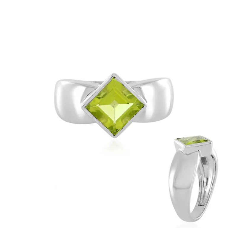 Dieser schicke Arizona Peridot-Ring mit einem faszinierenden 1,571-karätigen Stein im einzigartigen quadratischen Schliff besticht durch seine schlichte Eleganz. Der leuchtend grüne Farbton ist in hochwertiges 925er Sterlingsilber gefasst, das für zusätzliche Brillanz anmutig plattiert ist. Das schlanke Design, das durch das geometrische Mittelstück akzentuiert wird, unterstreicht seinen modernen Reiz. Dieser Ring ist ideal, um einem legeren Outfit einen farblichen Akzent zu verleihen oder ein Abendoutfit zu ergänzen, denn er ist vielseitig einsetzbar und passt zu allen Gelegenheiten. Dieser Ring ist ein echter Blickfang in Ihrer Schmucksammlung und steht für Eleganz und Stil.
