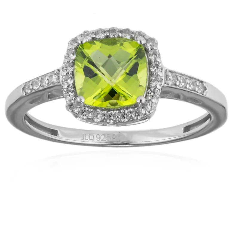 Arizona Peridot & Zirkon Silberring im Kissenschliff, 1,38ct