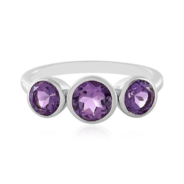 Entdecken Sie die lebendige Anziehungskraft des brasilianischen Azurquarzes, der fachmännisch in runde, facettierte Edelsteine geschliffen wurde, die bei jeder Bewegung das Licht einfangen. Dieser elegante Ring zeigt eine faszinierende Anordnung von drei Steinen, die wunderschön in platiniertem 925er Sterlingsilber mit einem Gesamtgewicht von 2,636 ct gefasst sind. Der strahlend violette Farbton dieses Rings ist ideal, um jedem Ensemble einen Hauch von Raffinesse zu verleihen, und eignet sich sowohl für den Alltag als auch für besondere Anlässe. Lassen Sie dieses exquisite Stück zu einer wertvollen Ergänzung Ihrer Schmucksammlung werden.