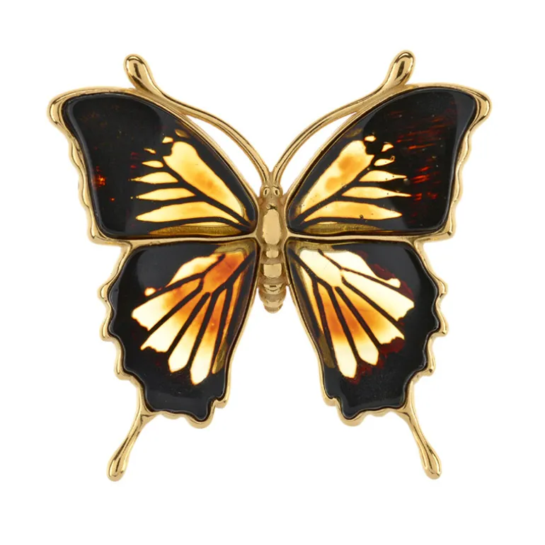 Schmücken Sie Ihr Dekolleté mit der Schönheit der Natur mit diesem auffälligen Schmetterlingsanhänger. Er ist aus vergoldetem 925er Sterlingsilber gefertigt und zeigt 6,2 Karat baltischen Bernstein im Fancy-Schliff aus Polen, der die Anmut der Schmetterlingsflügel nachahmt. Jeder Bernstein mit seinen warmen, harzigen Farbtönen fängt die Essenz eines goldenen Sonnenuntergangs ein und macht diesen Anhänger zu einem perfekten Accessoire für legere und elegantere Anlässe. Kombinieren Sie ihn mit Erdtönen, um seinen natürlichen Charme zu unterstreichen, oder mit einem schlichten schwarzen Kleid für einen eleganten Abendlook.