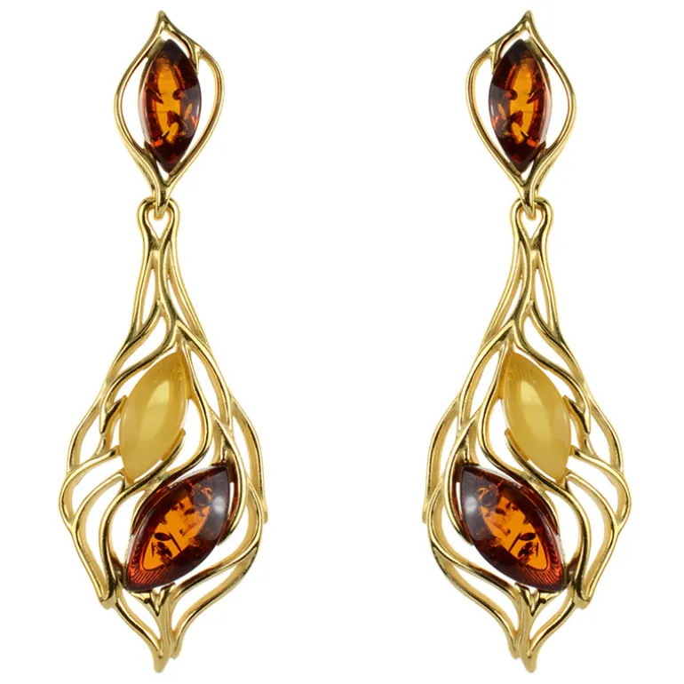 Baltischer Bernstein Goldplattierte Silberohrringe