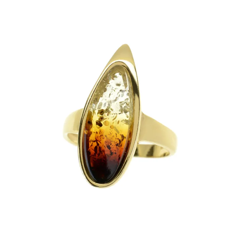 Polnischer Bernstein Tropfen Vergoldeter Silberring, 1,8ct