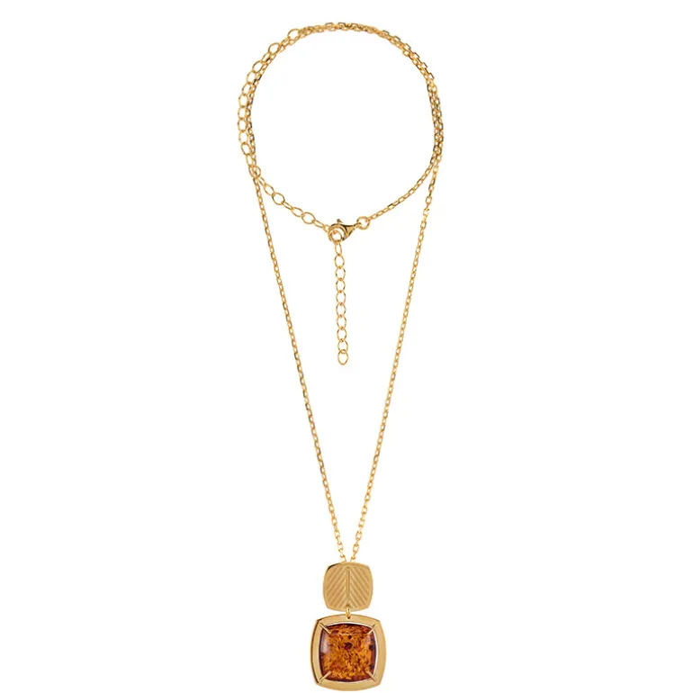 Diese exquisite Halskette zeigt einen atemberaubenden 3,5-karätigen baltischen Bernstein aus Polen, der elegant in einem kissenförmigen Cabochon gefasst ist. Das 925er Sterlingsilber ist wunderschön vergoldet und verleiht einen Hauch von Luxus. Mit einer verstellbaren Kettenlänge von 40-45 cm ist sie perfekt, um sowohl legere als auch formelle Kleidung zu veredeln. Ideal für besondere Anlässe oder als einzigartiges Geschenk.
