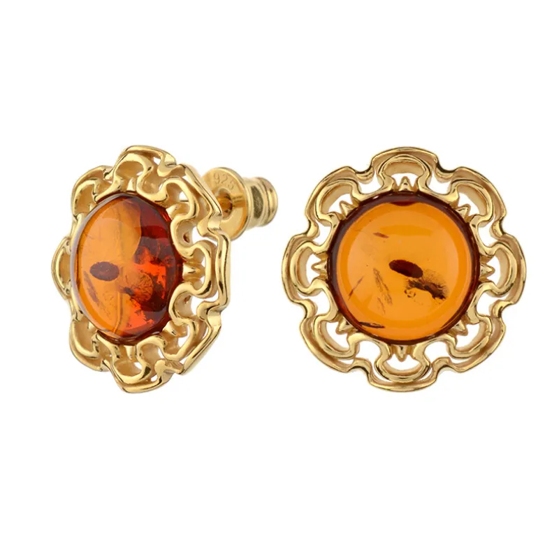 Baltischer Cognac-Bernstein Vergoldete Silberohrringe