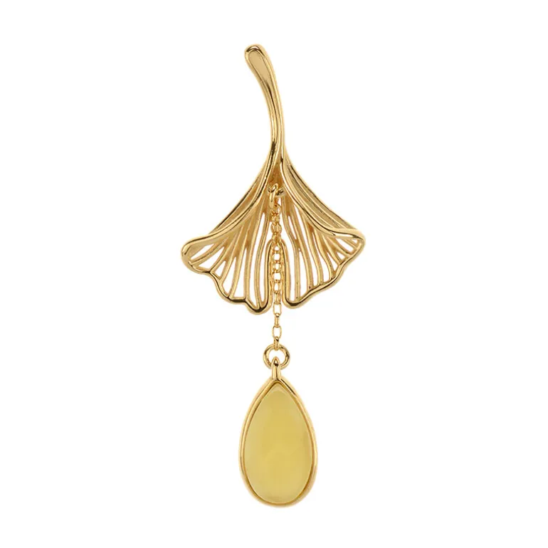 Dieser Anhänger, der die Essenz zeitloser Raffinesse einfängt, zeigt einen schimmernden 0,75-karätigen milchigen Bernstein aus der Ostsee, der sorgfältig zu einem tropfenförmigen Cabochon geformt wurde, der sanft von einem vergoldeten 925er Sterlingsilber-Design schwingt. Die kunstvolle Komposition des Anhängers und der warme, cremefarbene Farbton des Bernsteins machen ihn zu einem vielseitigen Schmuckstück, das sich sowohl für zwanglose Ausflüge als auch für formelle Anlässe eignet. Seine elegante Tropfenform passt zu einer Vielzahl von Dekolletés und verleiht jedem Ensemble einen Hauch von Anmut.