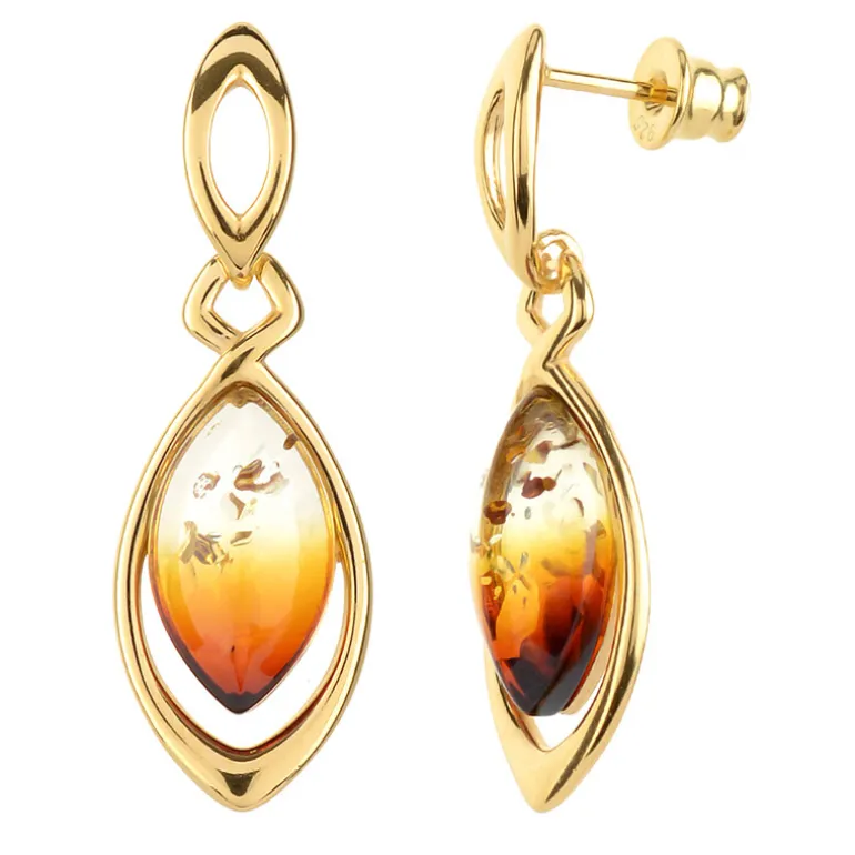 Erleben Sie die Wärme der Ostsee mit diesen exquisiten Sunrise Amber Ohrringen. Sie sind aus 925er Sterlingsilber gefertigt, elegant vergoldet und mit 2,75 Karat Bernstein im Marquiseschliff aus Polen besetzt. Diese 34 mm großen Ohrringe verleihen jedem Outfit einen Hauch von Raffinesse. Sie sind perfekt für einen Abend oder einen besonderen Anlass und passen sowohl zu Freizeitkleidung als auch zu formellen Anlässen.