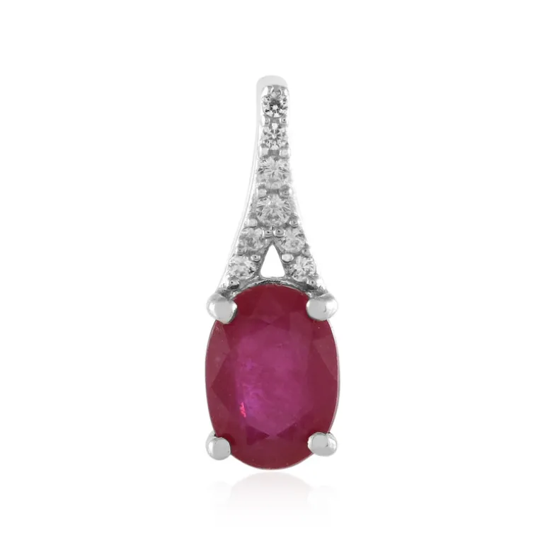 Dieser exquisite Anhänger präsentiert einen leuchtenden 0,919-karätigen Rubin aus Madagaskar, der fachmännisch in einer ovalen Brillantform geschliffen wurde. Akzentuiert von funkelnden Zirkonsteinen aus Kambodscha, strahlt dieses Stück Eleganz aus. Gefertigt aus 925er Sterlingsilber mit einer Platinplattierung ist er perfekt für glamouröse Abende oder als eleganter Begleiter im Alltag. Eine atemberaubende Ergänzung für jede Schmucksammlung.