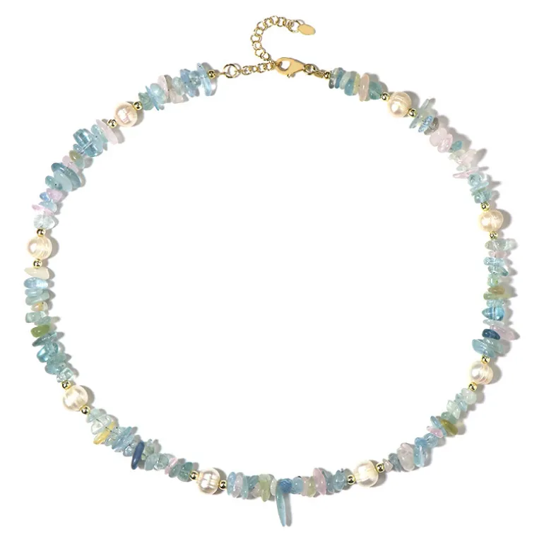 Beryll Perle Vergoldete Silber Halskette