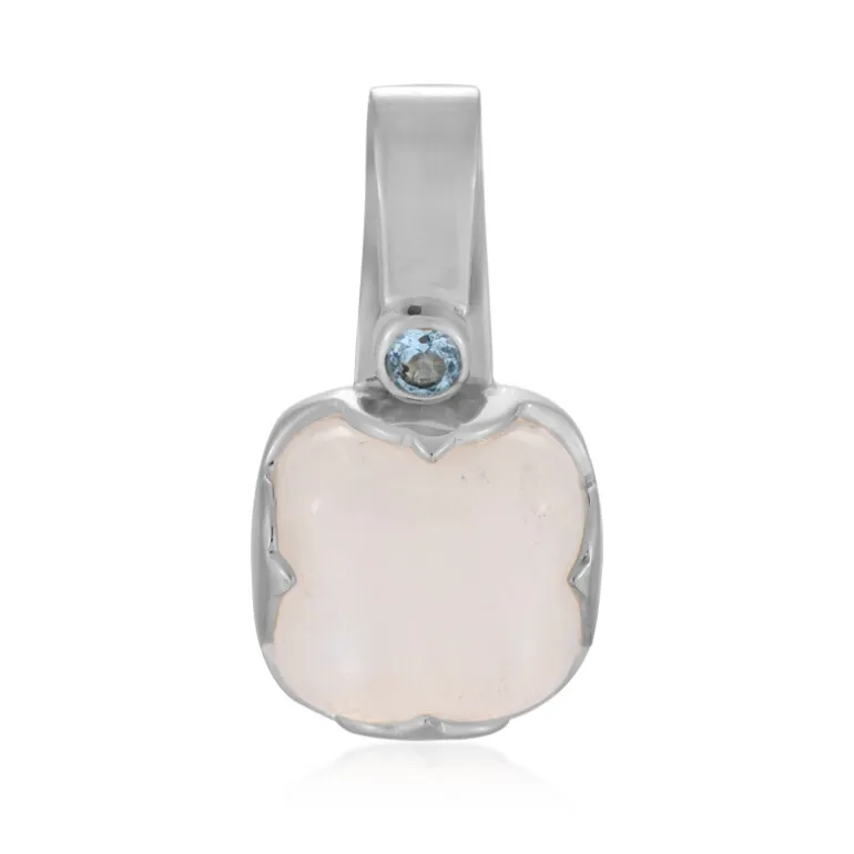 Entdecken Sie die Anziehungskraft des Schatzes von Bihar mit diesem schicken Bihar-Regenbogen-Mondstein-Anhänger. Der antike Edelstein im Cabochon-Schliff aus Indien wiegt bemerkenswerte 7 Karat und misst etwa 12 mm. Er strahlt einen mystischen Charme aus, der durch einen himmelblauen Topas aus Brasilien ergänzt wird. Der aus 925er Sterlingsilber gefertigte und mit Platin veredelte Anhänger wiegt ca. 2,2 Gramm. Mit seinen Maßen von 25 x 13,5 mm verleiht er sowohl der Freizeit- als auch der Abendgarderobe einen Hauch von Eleganz.