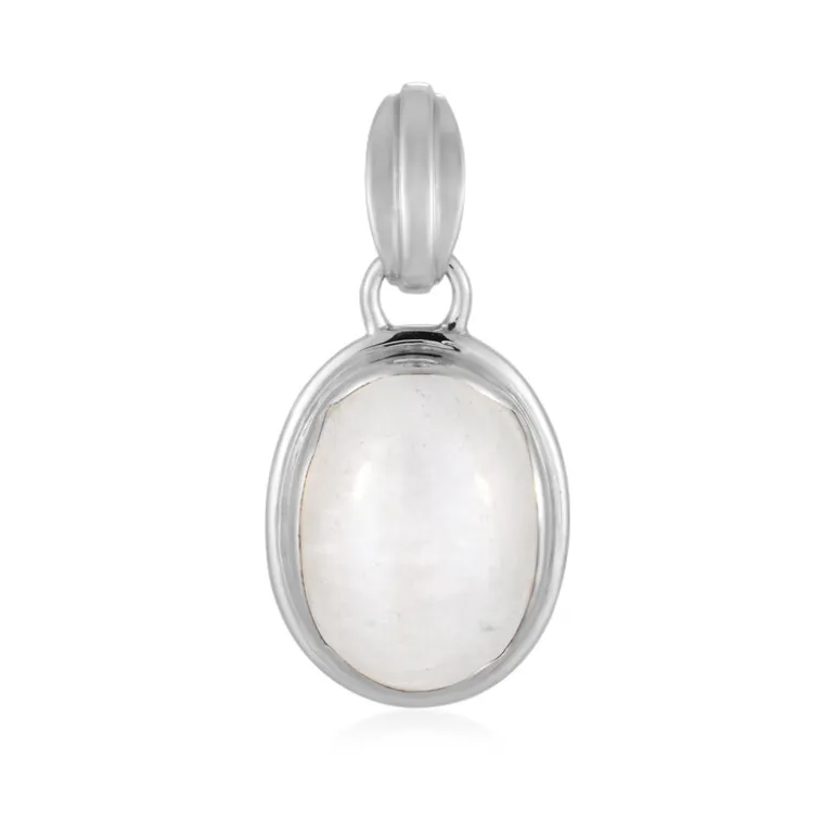 Entdecken Sie die Anziehungskraft Indiens mit diesem leuchtenden Bihar-Regenbogen-Mondstein-Anhänger. Der ovale Stein im Cabochon-Schliff mit einem Gewicht von 8,3 Karat ist meisterhaft in 925er Sterlingsilber mit einem modernen Platin-Finish gefasst. Der Anhänger mit den Maßen 25×15 mm baumelt anmutig und zeigt ein Farbspiel, das jedes Outfit ergänzt. Er eignet sich sowohl für legere als auch für formelle Anlässe und ist ein vielseitiges Stück, das Ihrer Schmucksammlung einen Hauch von Raffinesse verleiht.