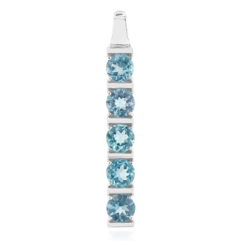 Entdecken Sie die Faszination dieses schicken blauen Apatit-Silberanhängers mit fünf atemberaubenden blauen Apatiten aus Madagaskar mit einem Gesamtkaratgewicht von 2,125 ct. Jeder Stein ist in glänzendem 925er Sterlingsilber gefasst und rund geschliffen, um seinen leuchtenden Farbton zu betonen. Dieser Anhänger eignet sich sowohl für legere als auch für formelle Anlässe und verleiht jedem Outfit einen Hauch von Eleganz, was ihn zu einer vielseitigen Ergänzung Ihrer Schmucksammlung macht.