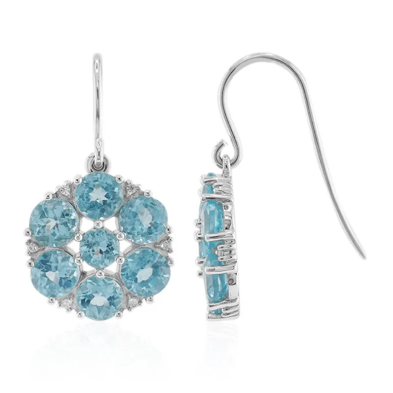 Entdecken Sie die Faszination dieser exquisiten Ohrringe mit leuchtend blauen Apatiten aus Madagaskar, die elegant in einem runden Schliff angeordnet sind. Der funkelnde Zirkon aus Tansania und die Fassung aus Sterlingsilber verleihen ihnen einen raffinierten Touch. Diese Ohrringe eignen sich sowohl für legere als auch für formelle Anlässe und werten jedes Outfit mit ihren faszinierenden blauen Farbtönen und ihrem raffinierten Design auf.