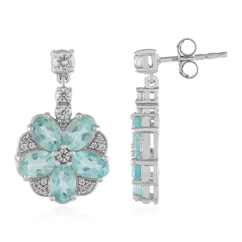 Entdecken Sie Eleganz mit diesen atemberaubenden blauen Apatit-Ohrringen aus rhodiniertem 925er Sterlingsilber. Mit einer schillernden Auswahl an brasilianischen blauen Apatiten und kambodschanischen Zirkonen sind diese Ohrringe ein Beweis für exquisites Design. Perfekt, um der Abendgarderobe einen Hauch von Funkeln zu verleihen oder die Tagesgarderobe aufzuwerten. Kombinieren Sie sie mit einer zarten Halskette, um Ihren eleganten Look zu vervollständigen.